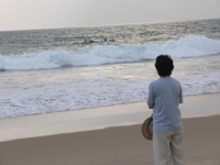 On holidays, the city comes out to the beach for a weekly refreshing. Long and wide sandy beach can accommodate tens of thousands. An indoor recreation club, children's park and a star shaped restaurant are some of the facilities at the beach. A large, enticing mermaid sculpture greets visitors. During temple festivals, the beach witnesses ritual washing of temple idols. That the beach is a fishermen village ensures an interesting sight of fishermen having their daily catch.
