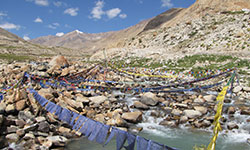 Zanskar Valley is about 20 kms. South of Rangdum. The most isolated of all the trans Himalayan Valleys. The Panzila Top (4401 m) is the picturesque tableland adorned with two small alpine lakes and surrounded by snow covered peaks. As the Zanskar road winds down the steep slopes of the watershed to the head of the Stod Valley, one of Zanskar's main tributary valleys, the majestic "Drang-Drung" glacier looms into full view. A long and winding river of ice and snow, the Drang-Drung" is perhaps the largest glacier in Ladakh, outside the Siachen formation.