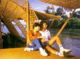 You can, for instance, choose either to be part of the scene or, detachedly, away from it. Your houseboat, except when it ties up alongside in the firefly haunted night, is never so far away from the banks that you cannot share, vicariously, in the lives of the people of the backwaters. Yet, you are never really close enough to become intimately involved in their trials and tribulations. You can, with complete freedom, pick and choose your passing involvement as if you were plugged into a Virtual Reality experience. For the passengers, the backwaters' houseboat experience is a step further on the rejuvenating trail. The environment of Kerala, the atmosphere of this green State, is therapeutic in itself. Just being in Kerala, as we've said, is a health-enhancing experience. But when you experience it in the peaceful drifting of a houseboat through the backwaters, you're adding a deep dimension of serenity to your therapy.