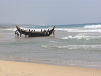 On holidays, the city comes out to the beach for a weekly refreshing. Long and wide sandy beach can accommodate tens of thousands. An indoor recreation club, children's park and a star shaped restaurant are some of the facilities at the beach. A large, enticing mermaid sculpture greets visitors. During temple festivals, the beach witnesses ritual washing of temple idols. That the beach is a fishermen village ensures an interesting sight of fishermen having their daily catch.