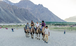 About 12,000 ft above sea level, 150 km north of Leh, lies the Nubra Valley, one of the highest deserts in the world where many are lured to experience the Camel Safari. On the double humped Bactrian camel in Hunder and Diskit, travel over the Ladakhi sand dunes. Our camel safaris start from Hunder, where you will make an acquaintance with the Mongol inhabitants, and will go on to explore never before experienced locales along the non-motorable side of Shyok River, all the way to Turtuk at the border!