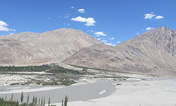 Nubra Valley lies about 150 km north of Leh where the Rivers, Shyok and Siachan, meet form a large valley. This valley separates the Ladakh from the Karakoram Ranges and the famous Siachen Glacier lies to the north of the valley. To the northwest of Nubra valley, lies The Sasser Pass and the famous Karakoram Pass of the 'Silk Route' fame which connect Nubra with Xinjiang. Panamik village is the last settlement in the northern end of in Nubra valley is open to tourists. Nubra valley has a lot to offer and is as a must do for everyone who travels to Leh It has been identified as a tourist circuit by the local administration of Leh district.